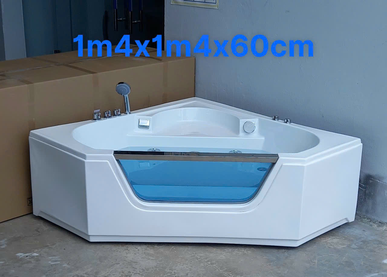 - Bồn tắm Góc Kiếng Kích thước: 1m4x1m4x58cm Chất liệu: Acrylic nhập khẩu chống bám bẩn Chế độ bảo hành: 3 năm Vận chuyển: miễn phí vận chuyển