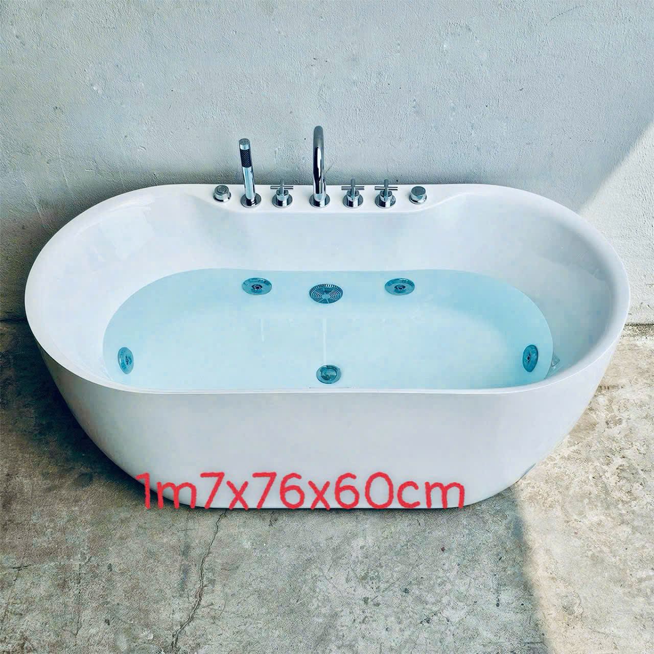 - Bồn tắm Oval Trứng có sen vòi và có mắt sục massage Kích thước: 1m7x78x60; 1m6x78x60; 1m5x76x60; 1m4x76x60cm; 1m2x76x60 Chất liệu: Acrylic nhập khẩu chống bám bẩn Chế độ bảo hành: 3 năm Vận chuyển: miễn phí vận chuyển