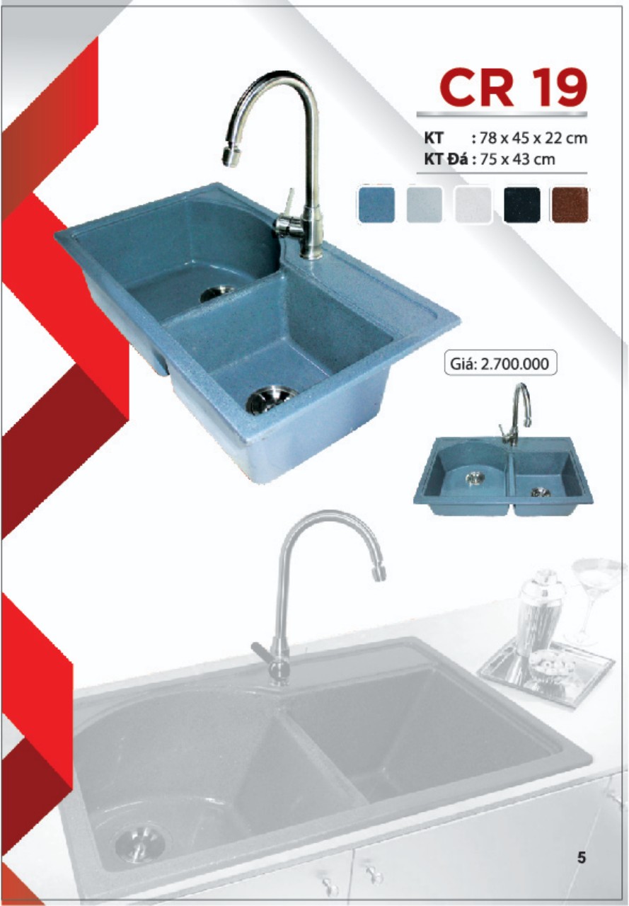 - Chậu rửa chén được đúc nguyên khối từ bột đá GRANITE và chất kết dính có kiểu dáng sang trọng phù hợp cho nhiều không gian bếp